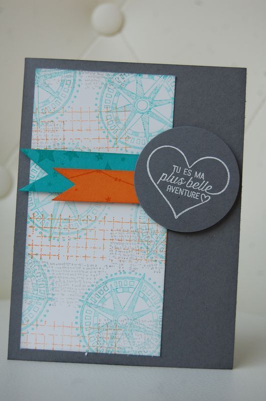 Avec mes sets fétiches "timeless textures" et "jusqu'au bout du monde"....le texte est embossé avec la poudre blanche.
